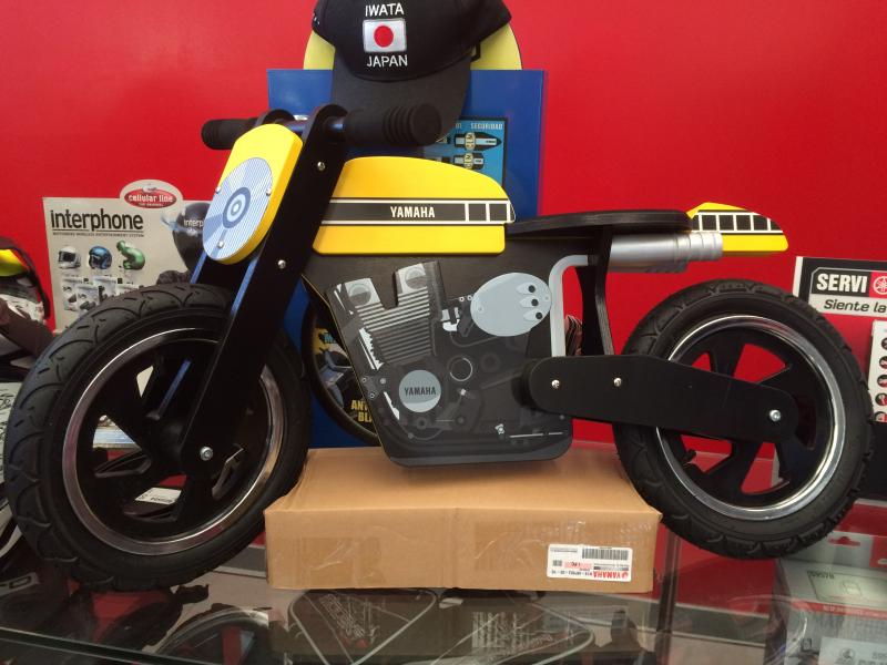 - Moto de equilibrio de madera, con el clásico diseño de Yamaha